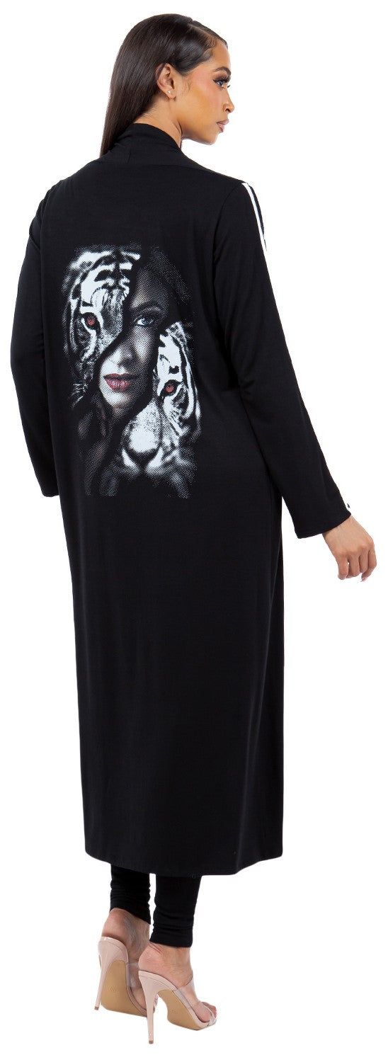 Unleash your inner power with our Queen Collection, crafted in a luxurious rayon knit that feels butter-soft against the skin with a fluid, weighted drape. The signature print-half woman's face, half tiger-embodies fierce femininity and quiet strength, a bold symbol of duality and grace. This statement-making collection features versatile silhouettes designed to move with you: A dramatic duster jacket for layering with presence, flowing palazzo pants that blend ease with elegance, A v-point tunic top that flatter and elongates, Sleek leggings for everyday edge, A transformative 7-way scarf for endless styling options, A cozy yet chic wrap shawl, and a bold 3-way jumpsuit that adapts to your mood and moment. Each piece invites you to embody the queen within-fluid, fearless, and unapologetically you.